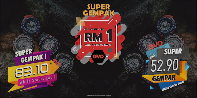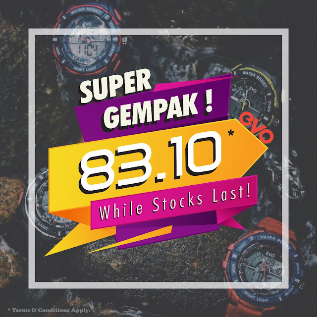 Dari banyak-banyak jenama tengah buat expo sale , mata Lisa tertumpu pada SUPER GEMPAK EVO pula. Mana nak dapatkan harga yang super jimat macam di expo ni weih ... bayangkan EVO RM 52.90 , EVO RM 83.10 pastinya while stocks last tau .! Siapa cepat dia yang dapat... sayang pula kalau terlepas . Yang ni lagi best , EVO RM 199 + RM 1 maksudnya Beli 1 jam seharga RM199 dan harga jam kedua korang hanya perlu tambah RM1 sahaja . WOW ! bestnya ...